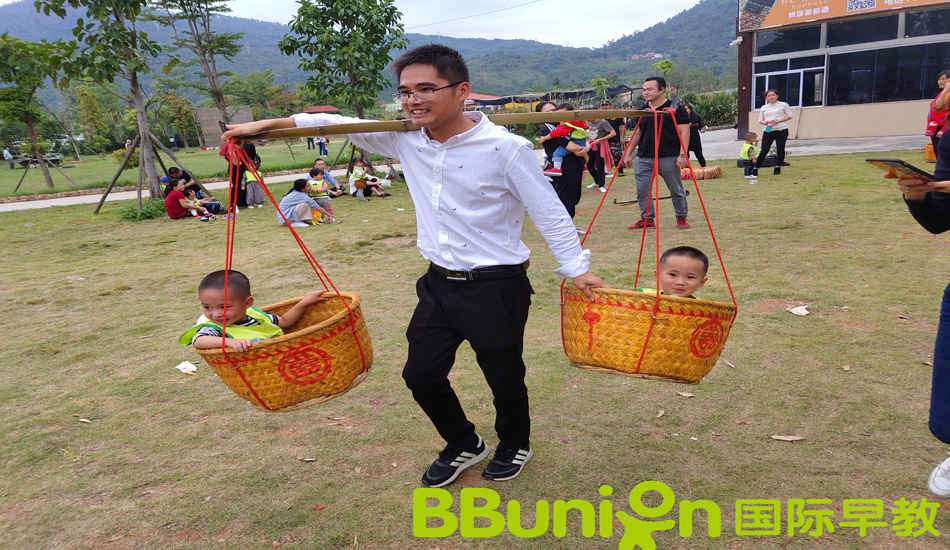 时间晃眼过午了,种完菜的宝宝们开始闹觉觉了。教官叔叔带着大家到草丛上做游戏啦。热身需要“开拖拉机”、“刀削面”...松完筋骨就上了个大家伙??箩筐和扁担。宝宝们可都没有见过,一个个迫不及待想尝试。爸爸们长年坐办公室反而望而却步。爷爷一马当先做了个示范,妈妈们也不甘弱后挑起了两个宝宝。爸爸们最后上场扳回一局。